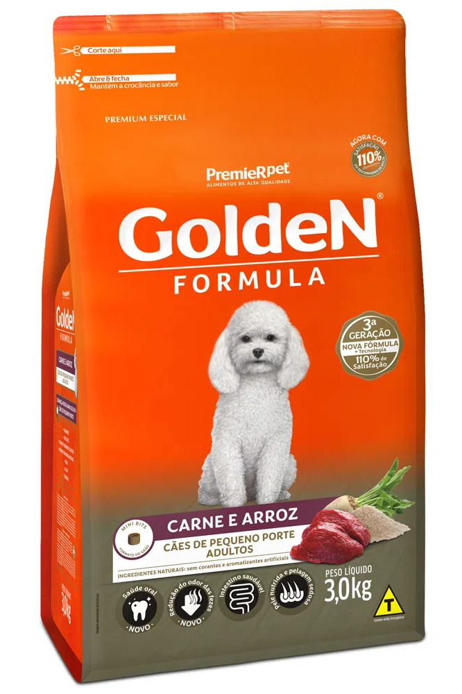 Ração Golden para Cães Adultos Raças Pequenas Fórmula Carne e Arroz 3kg